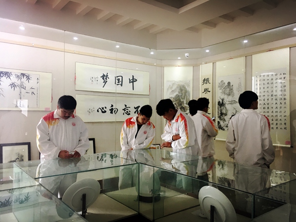 同学们在一幅幅书画作品前驻足观望、低头沉思,回忆历史。有的同学说红军不畏艰险的精神、爬雪山过草地的故事深深震撼自己的心灵;有的同学说孙中山先生领导的辛亥革命结束了中国的封建社会意义重大;还有同学表示书画作为中国的传统文化在今天需要去传承……