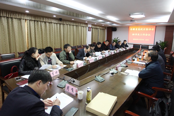 11月4日上午,安徽省高校后勤协会秘书长会议在我院召开。院党委书记王进会见了全体参会人员并在会上致辞。安徽省高校后勤管理中心主任、省高校后勤协会秘书长陈鹏,安徽省高校后勤管理中心副主任、省高校后勤协会常务副秘书长胡孝玉出席会议。院领导占峰出席欢迎会。