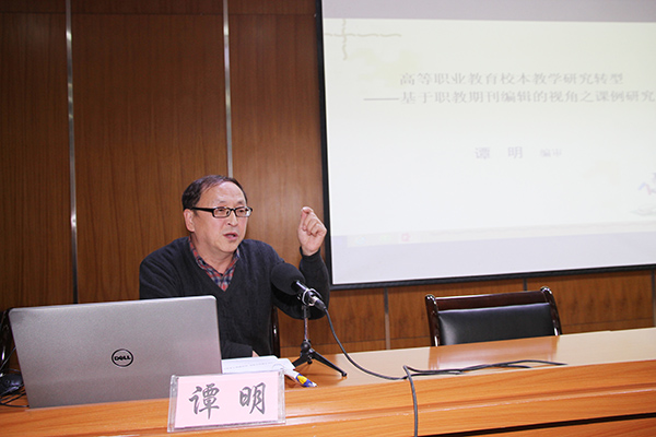 谭明社长作了题为“高等职业教育校本教学研究转型”的讲座。他基于职教期刊编辑的视角,结合高职教育实际,从国内外课例研究的发展历程、实现高职院校内涵式发展的需要、课例研究实践的个案分析等三个方面论述课例研究在高职教育校本教学研究中的重要性,为我院教师撰写科研论文提供了选题方向。