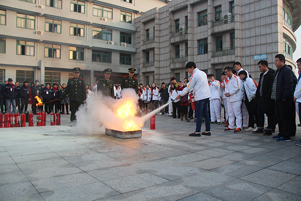 在安庆消防支队的直接指导下,本次活动对物业管理人员,食堂、超市从业人员,各系、各班级安全员和实训中心相关工作人员进行了培训和演练。演练内容主要是消防知识讲解和灭火器的正确使用方法及现场灭火演习。演练现场师生员工情绪饱满,积极参与,同学们踊跃上前有条不紊地完成每一项操作任务,取得了良好效果。演练结束后,安庆市消防支队与院保卫处负责人重点检查了图书馆、实训中心实验室及学院档案室,并对实验室的化学物品存放与管理等提出了改进意见。