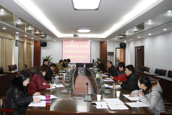 谭维奇对新学期教学工作提出了要求。教师、教材、教室安排一定要到位;教师的选聘要遵循相关规定和要求;开课表一经确定原则上不能更改;要做好教科研项目的储备工作和职教联盟相关工作;要做好2017届毕业生顶岗实习安排及管理工作;做好今年省级职业技能大赛赛前集训工作,争取训练取得成效显著;做好每周的日常教学检查工作;做好教师信息化教学大赛工作以及教学诊断与改进工作。他希望相关职能部门及各系部积极落实学院教学工作要求,全力抓好新学期开学教学准备工作,确保新学期教学各项工作扎实有效开展。 会上,教务处负责同志从教师、教材和教室安排,课表挂网,教学值班安排等方面进行了布置,并对教师聘请、课时统计、教研室活动的开展、实践教学、教师信息化教学及教风学风建设提出了具体要求。实训中心、图文信息中心负责同志分别就实训课表、技能鉴定和实训耗材的采购、技能大赛训练及机房的使用做了安排。