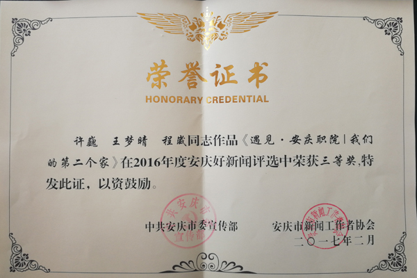安庆好新闻由中共安庆市委宣传部、安庆市新闻工作者协会组织评选。此次共评选出好新闻作品一等奖7件、二等奖11件、三等奖20件。 我院此次获奖作品,以新媒体形式图文并茂地推介了我院大学生宿舍的文化装饰与创意设计成果,充分展示了我院大学生的青春活力、创新能力以及对生活的热爱。 获奖作品:遇见*安庆职院|我们的第二个家