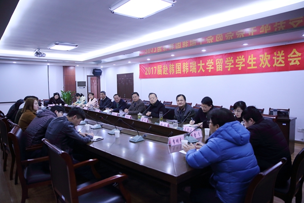 3月3日上午,我院2017届七位同学赴韩国韩瑞大学留学欢送会在综合办公楼第二会议室举行。副院长施运华、谭维奇出席欢送会。
