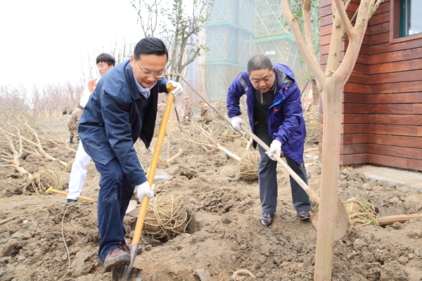 3月10日上午,院领导王进、施运华、毕明生、方天祜、占峰、谭维奇及二十余名师生到安庆市新河老城区“桥”段整治工程现场,参加义务植树活动。