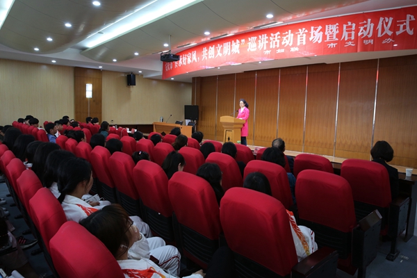 4月26日下午,市妇联、市文明办联合举办的“传承好家风・共创文明城”巡讲活动启动仪式在我院图文信息楼三楼报告厅隆重举行,市妇联相关负责人、副院长毕明生及经济贸易系全体专职辅导员出席活动,现场经济贸易系三百余名同学参加了活动。 启动仪式上,五位宣讲员讲述了最美家庭的故事,这些“最美家庭”的点滴言行在坚持与坚守中汇聚成为清新家风、和煦家风,在他们的分享和讲述里,现场同学感受到了榜样的力量。