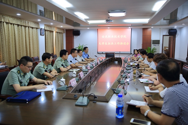 6月14日,安庆市副市长黄杰来我院调研大学生征兵工作。安庆市军分区参谋长杨进、迎江区常务副区长杨旭东、迎江区武装部政委钱志宏、副部长郭要东等陪同调研。院党委书记王进、副院长毕明生出席调研会。