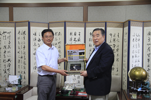韩瑞大学咸基善校长热情会见了施运华一行,会谈气氛友好而热烈。宾主双方就共同关心的合作事宜进行了深入的探讨、交流。施运华转达了安庆职业技术学院校务委员会主任王进先生对咸基善校长的问候,并赠送具有安庆艺术特色的雪木画作品。咸基善校长也请施运华转达对王进先生的问候,并邀请王进先生在适当的时候到韩瑞大学进行访问。