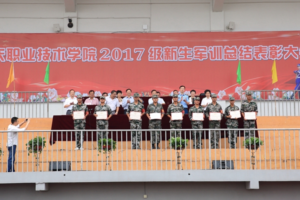 方天祜宣读了《关于表彰2017级新生军训先进集体和先进个人的决定》。学院对一营四连等9个“军训优秀连队”,潘江等9名“军训优秀教官”,2栋125寝室等35个“内务整理标兵寝室”,黄祺星等102名“军训优秀学员”进行了表彰。院领导和人武部领导为获奖的优秀连队、优秀教官颁发了证书和奖牌。