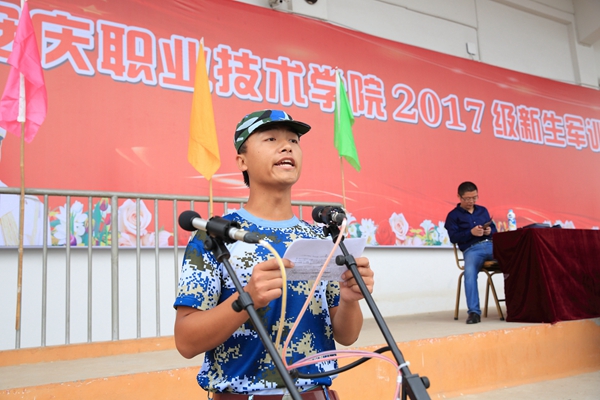 机电工程系纪多龙同学代表2017级新生军训学员作了发言。(文/桂 骏 图/闻胜海)