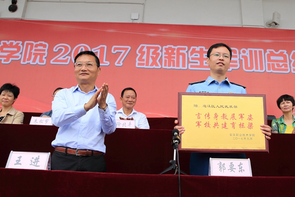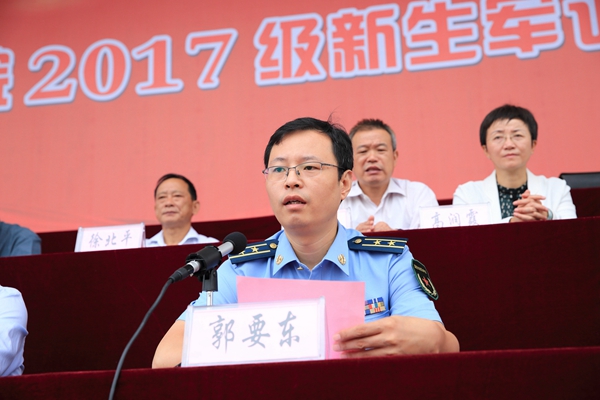 郭要东勉励同学们把军训中培养起来的国防意识、顽强意志和良好品格继续保持,发扬光大,努力学习,勇攀高峰,创造人生征途新的辉煌。