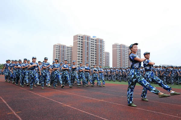 上午9点,大会在庄严的国歌声中拉开帷幕。26个新生连队排着整齐的队列,踏着稳健的步伐,喊着响亮的口号,踩着有力的节奏,精神抖擞,士气高昂,逐次通过主席台接受检阅,充分展示了新生积极向上、团结奋进的精神面貌,全面展现了为期12天刻苦训练的成果。整个汇报表演昂扬着青春的气息,绽放着铿锵的节奏,取得了圆满的成功。