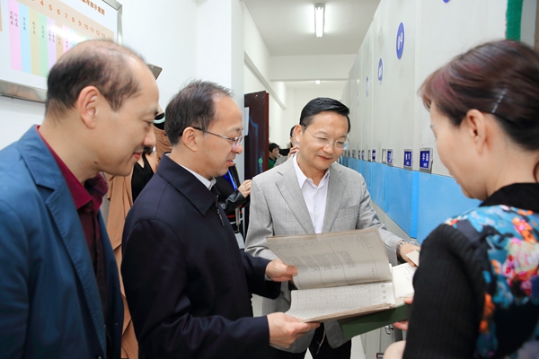 10月11日,省档案事业依法管理现场会在安庆召开。会议期间,省档案局局长黄玉明、副局长程潜龙等档案部门专家领导,在安庆市人大常委会副主任刘飞跃、市档案局局长曹艾群的陪同下来我院检查指导工作。院党委书记王进、副院长施运华陪同。 与会领导专家在观摩我院档案管理情况,考察我院校史馆后对我院档案工作给予了充分肯定,希望我院进一步提升依法治理档案意识,促进档案治理能力现代化,以优异的成绩迎接党的十九大胜利召开。