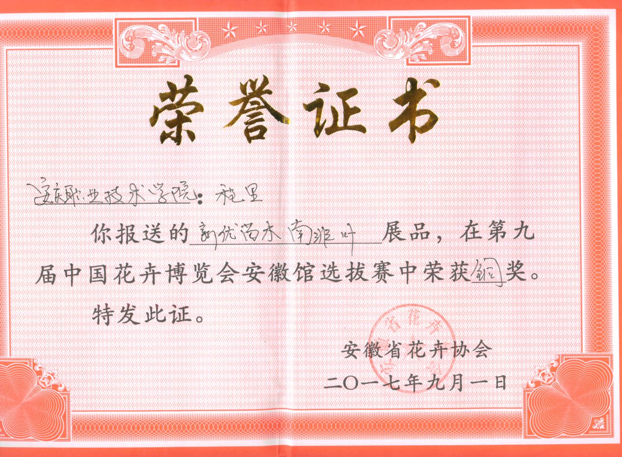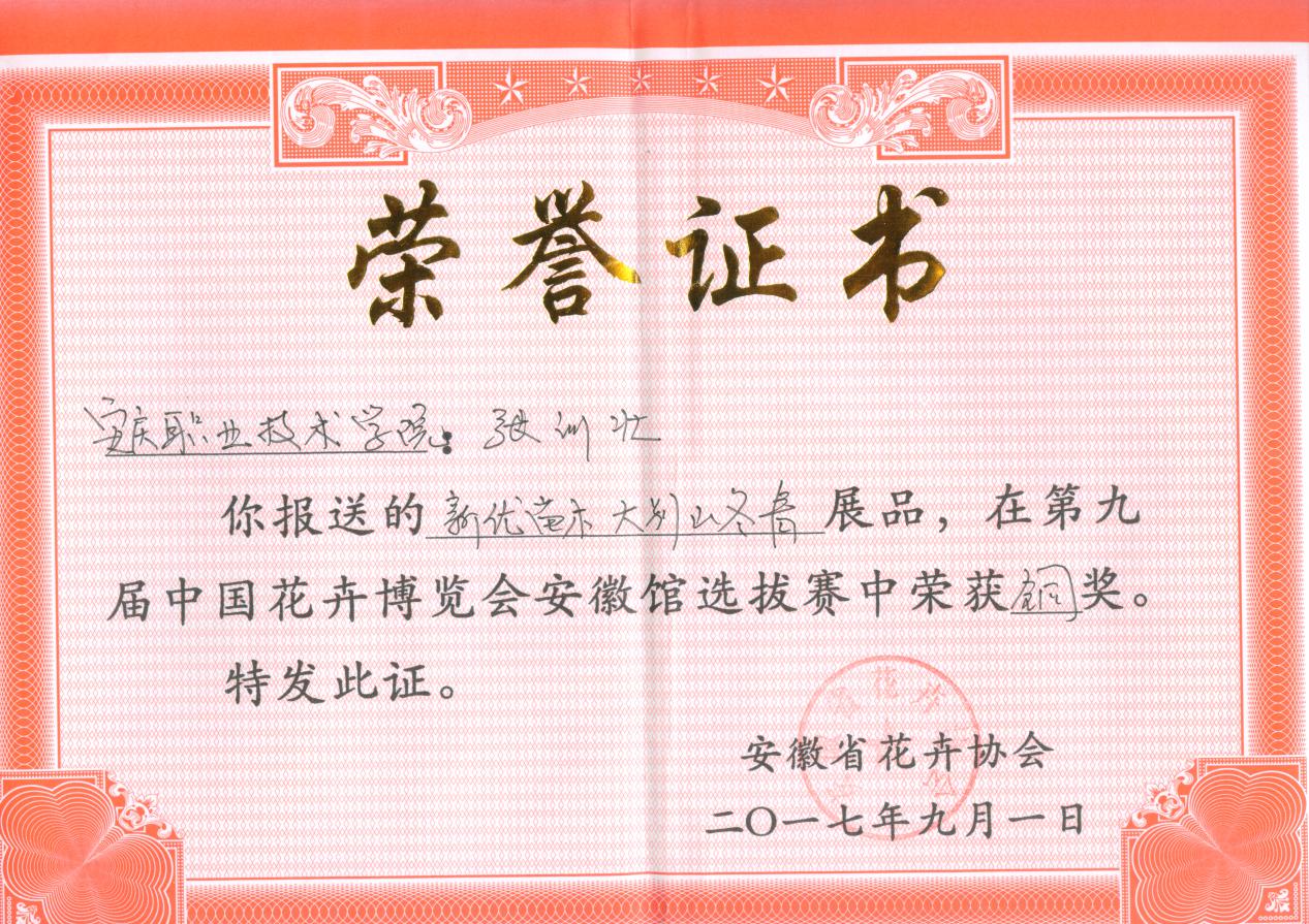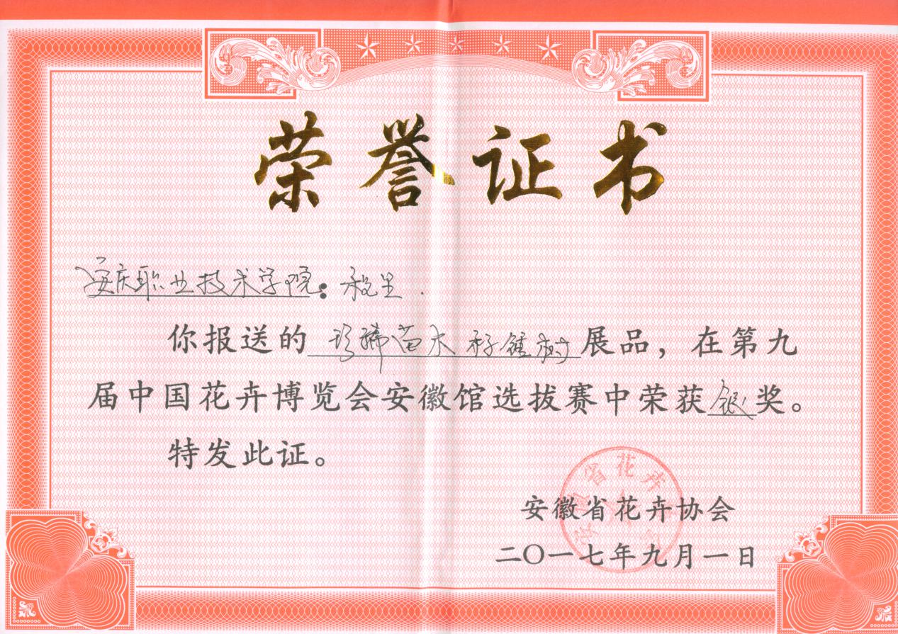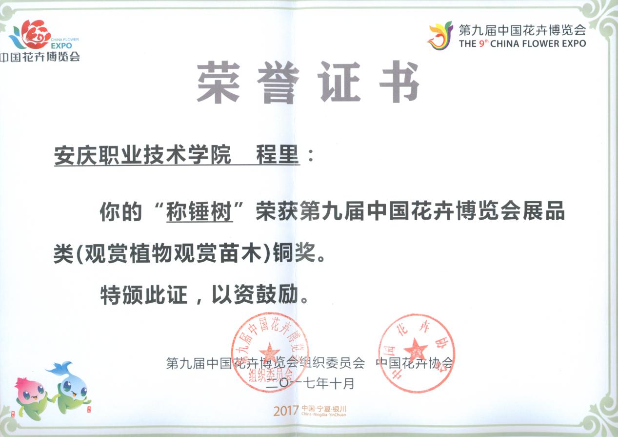 9月1日至10月7日,第九届中国花卉博览会在银川花博园举办,我院园林园艺系张训壮和程里两位同学在指导老师徐基艳、唐玲的带领下参加了本届花博会,并获得了国家级铜奖1枚,省级金、银奖各1枚,省级铜奖2枚。
