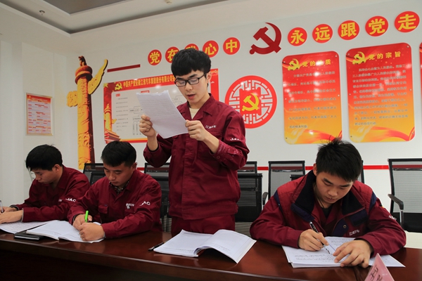 机电系一行得到了江淮汽车安庆分公司副总经理和公司生产党支部书记的热烈欢迎,公司总装分厂、涂装分厂、生产管理部各厂部长和党员也参与了交流。双方表示十九大的胜利召开为校企之间在党建共建方面提供了理论之源与实践思路,在今后的校企合作中,要以十九大精神为指引,找到更多更好的契合点,通过双方党建互动和研讨,为校企之间搭建更为广阔的合作平台,推动企业发展与专业建设之间的交流合作,培养新时代应用型和技能型人才。 会上,江淮汽车安庆分公司生产党支部书记主持召开了机电系与江淮共同发展培育的预备党员的转正会议。各预备党员同志汇报了个人在思想、生活、学习、工作等方面的表现,表达了他们入党的决心和加入中国共产党的强烈愿望。我系入党介绍人和江淮公司培养人分别对其学习、工作、实践活动等方面进行介绍与评价。随后拥有表决权的党员对预备党员转正一事进行投票表决。经正式党员的一致表决,参会的各位预备党员顺利通过党组织审核,成为正式党员。随后,四名正式党员在江淮汽车安庆分公司生产党支部书记的带领下,庄重宣读入党誓词。 机电工程系负责人刘磊对如期转正的四名党员同志表示祝贺,并提出了三点希望:第一,要学习一种理论,就是马列主义、毛泽东思想、邓小平理论、“三个代表”重要思想、科学发展观和习近平新时代中国特色社会主义思想,用党的先进思想武装自己的头脑;第二,要树立一种思想,就是全心全意为人民服务的思想,树立正确的人生观和价值观,端正入党动机;第三,要形成一种风格,就是谦虚谨慎,戒骄戒躁的风气,做正义坦荡之人,积极发挥党员的先锋模范作用。 江淮汽车安庆分公司副总经理刘道兵对本次会议进行了总结发言,他系统回顾了公司与机电系多年合作历程,表示校企合作、党建共建是探索学校党建工作与企业党建工作合作的新思路、新做法,有利于充分发挥学校和企业双方的优势,丰富党建工作的活动载体,他对四名正式党员提出了三点要求:一要认真通读党的十九大报告和党章,记录好自己的所思所想,写好学习心得;二要牢记党员义务,带头践行党的路线,秉承克己奉公,在奉献中成长,在创业中收获;三要不忘初心,在今后的工作中起带头引领作用,靠自己的努力和作为,成为骨干中的骨干、优秀中的优秀。 本次活动,以贯彻党的十九大精神为契机,以校企合作、党建共建为抓手,是双方共建党支部的一次融合,做到了资源共享,实现了优势互补,开创了校企合作双方党建事业发展的新局面。(文/严彦蕾 图/闻胜海)