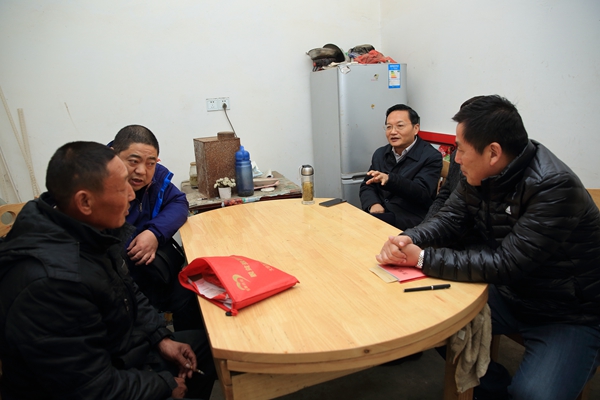 在走访期间,王进、方天祜看望慰问了我院在长林村挂职、担任第一书记和扶贫工作队长的沈良生同志。在听取沈良生同志在长林村开展的扶贫工作情况汇报后,王进叮嘱他继续认真学习贯彻党的十九大精神,研究掌握农村工作方法,深入基层群众,把党的扶贫政策宣传落实到位,同村“两委”一道把村里的经济发展起来,让贫困户早日脱贫过上小康生活。