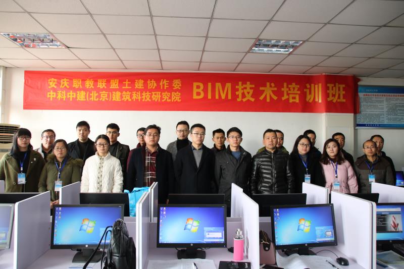 12月11日,安庆职教联盟建工协作委联合中科中建(北京)建筑科技研究院在安徽理工学校举办BIM技术培训班,来自我市多家建筑企业技术人员和我院建筑工程系专业教师共18人参加了培训。