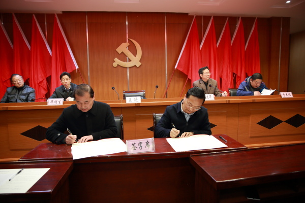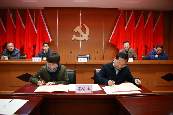 在讲话前,王进与各党总支、直属支部、处室代表现场签订了《党风廉政建设责任书》和《安全稳定工作目标责任书》。