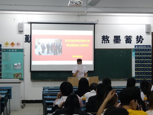 5月3日,院团委组织各系团总支老师、各班级团支部学生集中学习热议总书记讲话精神。