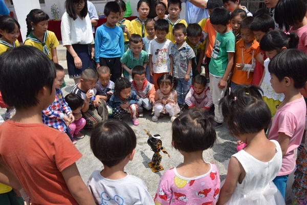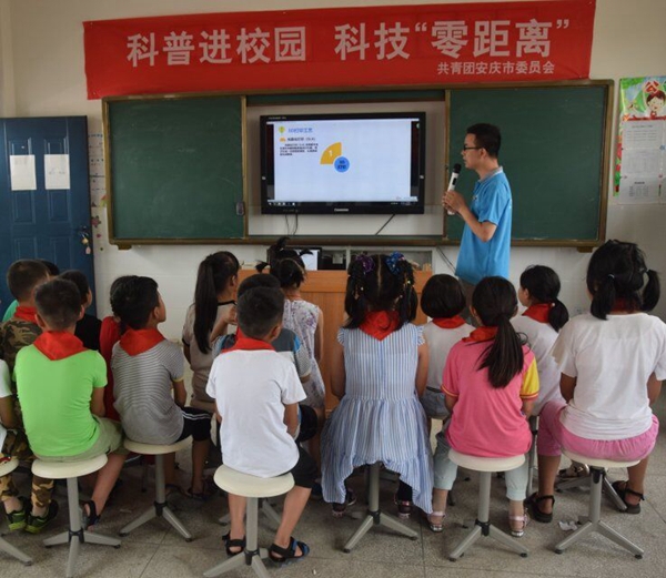 6月15日,团队前往望江县虎山村小学开展活动。团队向虎山村小学同学详细讲解了该系学生自制的环保科技作品,讲述制作科技作品的目的,制作的方法,期间遇到的困难以及解决途径。鼓励同学们要学好基础知识,将来为科技发展贡献力量。