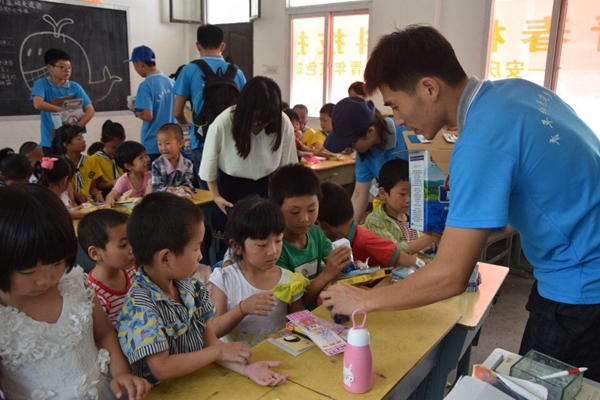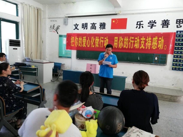 6月14日,活动团队前往宿松县廖河村小学开展活动。此次活动“青春机电,科技扶贫”项目团队向廖河村小学同学捐赠了相关文具物品和少量玩具,向同学们展示了该系学生自制的环保科技作品,获得了廖河村小学领导和同学们一致好评。