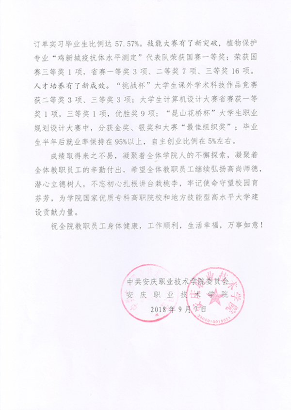 地址:安徽省安庆市天柱山东路99号 邮编:246003 院办电话:0556-5283028(传真) 安庆职业技术学院版权所有 备案号: