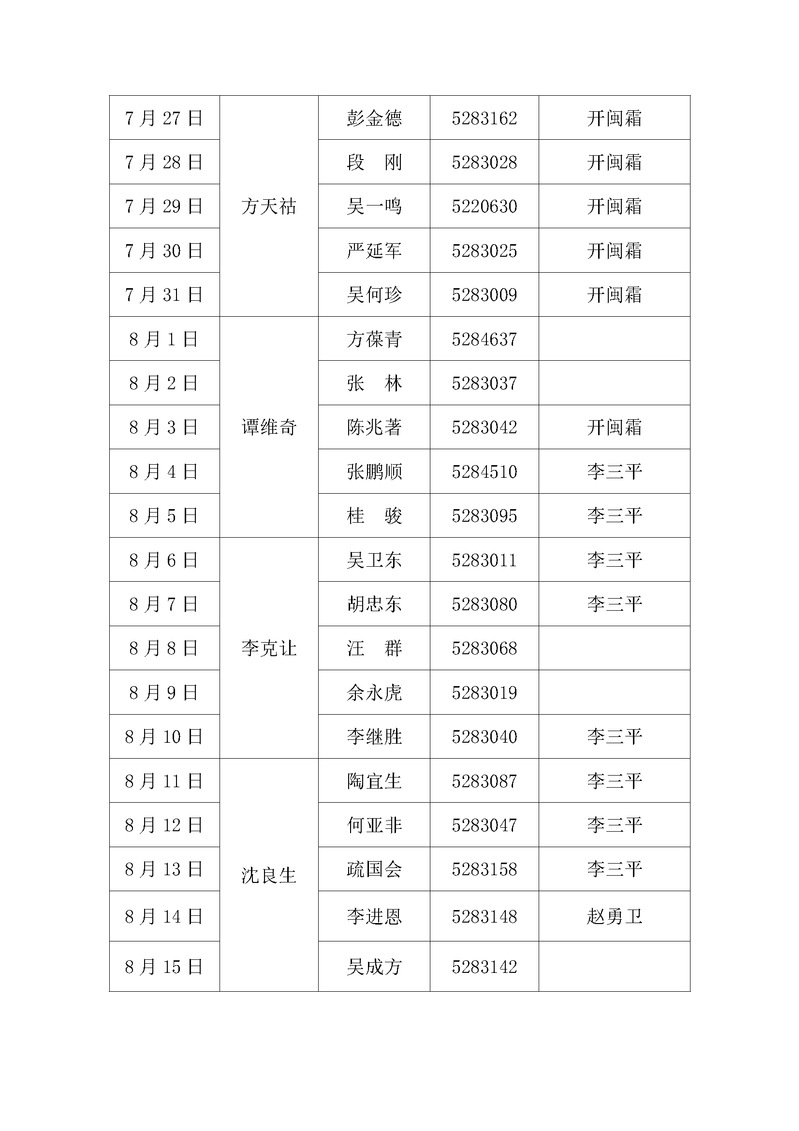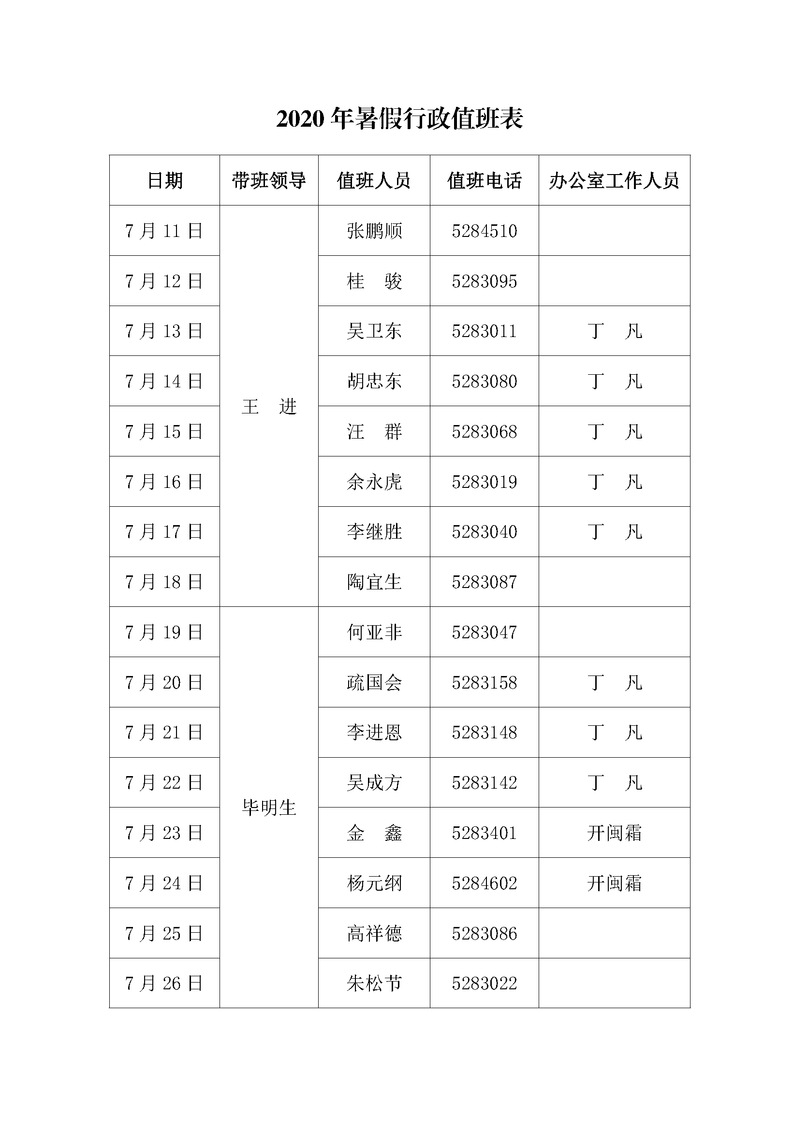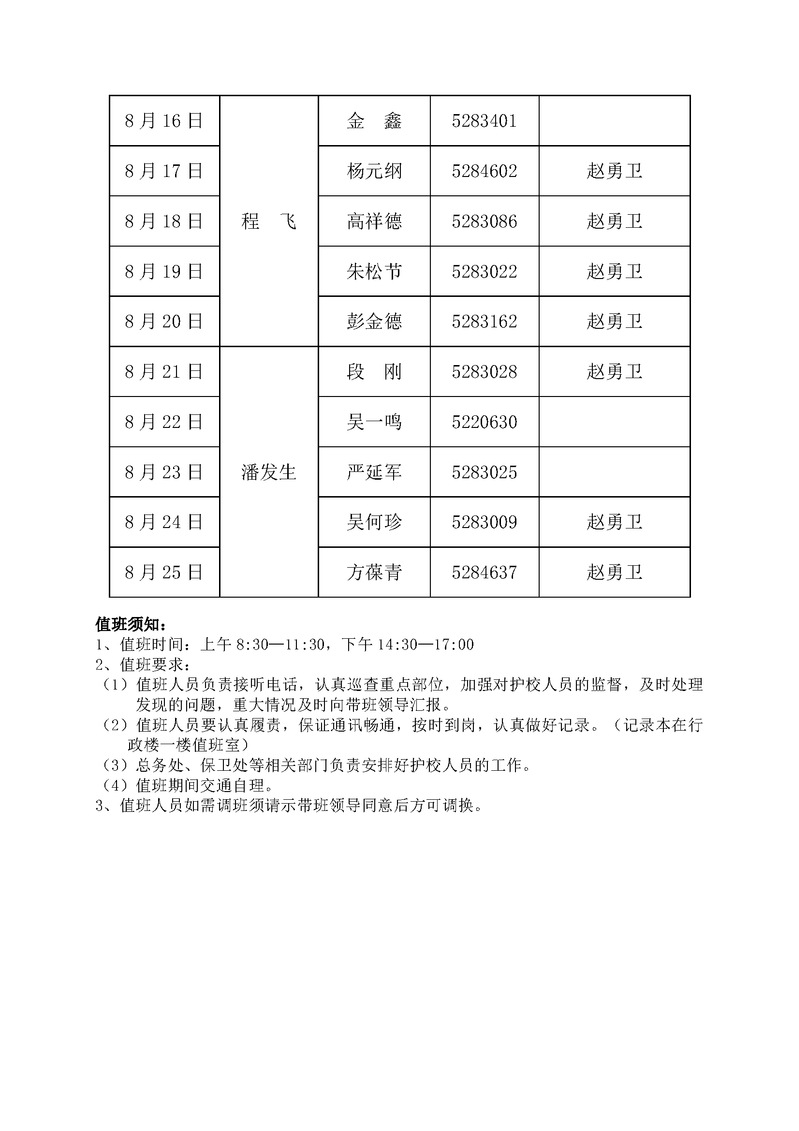 附件3:暑期行政、保卫值班表