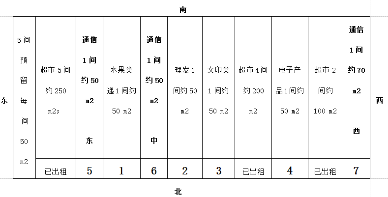 说明:拍卖标的按上表顺序依次拍卖。各门面的位置,详见经营性门面现场示意图(图表中的数字序号对应上表):