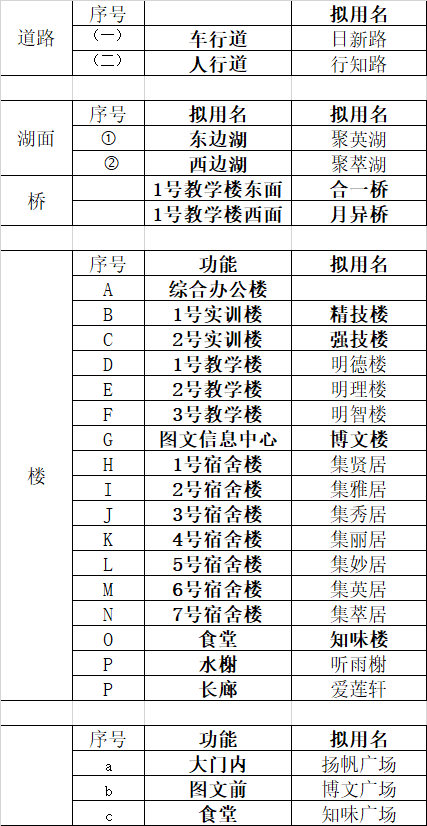 2021年7月,我校开展了路楼湖命名征集活动。经投稿筛选、讨论和研究,现将命名结果予以公示(详见下表),如有意见建议,请于11月12日前发邮件反映和电话联系。