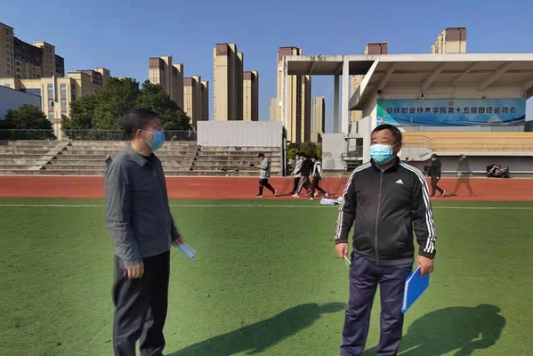 3月11、12日校长毕明生、党委副书记李克让、党委委员、副校长谭维奇,在教务处、保卫处、管理服务学院主要负责同志的陪同下,对体育场馆疫情防控及体育教学情况检查指导。