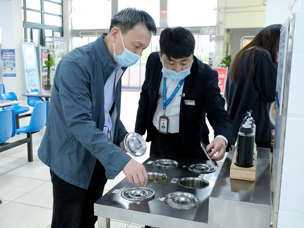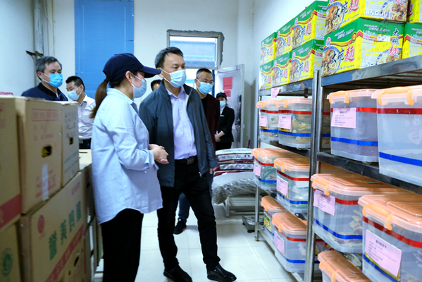 “同学们喜欢食堂的饭菜吗?”“最喜欢吃什么呀,饭菜够不够?合不合口味?价格合理吗?”“点餐窗口服务态度怎么样?还要增加哪些花色品种?”童宏葵一走进食堂,就关切地询问正在排队打饭的同学,同学们一一回答。随后,童宏葵一行仔细察看了厨房操作间、储物间,详细了解食材进货渠道、食品安全和食物储备情况。