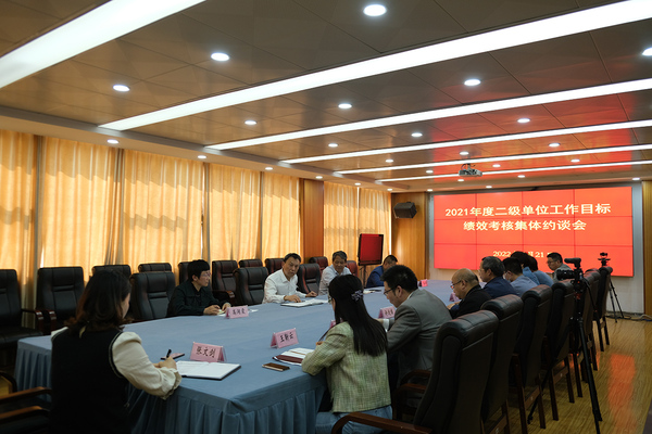 4月21日下午,我校召开2021年度二级单位绩效考核集体约谈会。校党委书记童宏葵出席会议并讲话。党委副书记李克让主持会议。党委委员、组织部长高润霞通报了2021年二级单位目标绩效考核整体过程与结果。校党委组织部、办公室负责同志及被约谈单位班子全体同志参加会议。