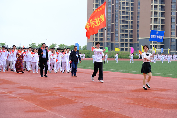 4月29日上午8时,我校第十六届田径运动会在运动场隆重开幕。党委副书记、院长毕明生,党委副书记李克让,党委委员、副校长谭维奇、程飞,党委委员高润霞、吴何珍、李五一及大赛组委会成员在主席台就座。高润霞主持仪式。
