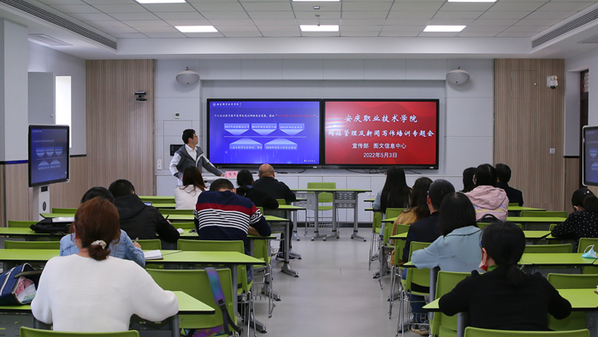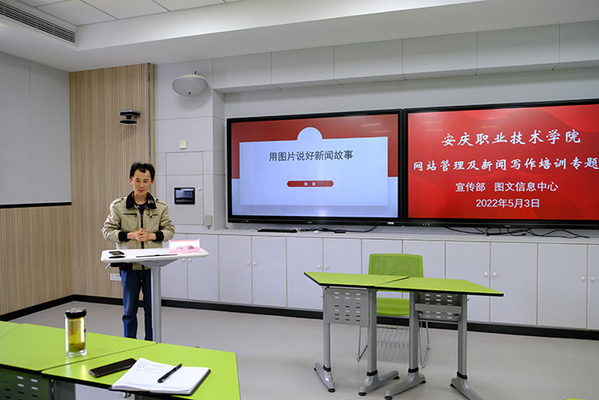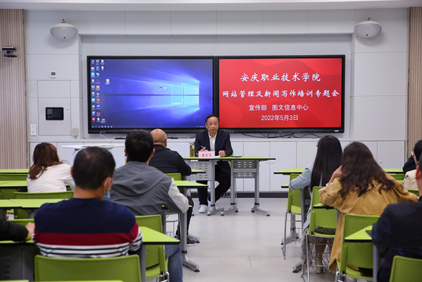5月3日下午,校党委宣传部联合图文信息中心在2号教学楼102智慧教室举办网站管理和新闻写作专题培训,校教育教学督导员潘发生,图文信息中心陈伟老师及宣传部姚盈老师应邀授课。
