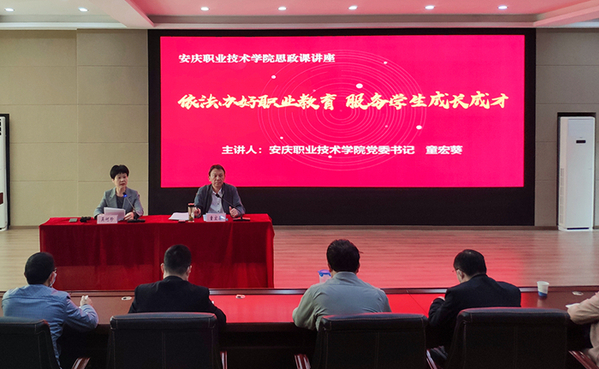 童宏葵从中等职业教育、高等职业教育和安庆职教集团等方面讲述了安庆职业教育发展现状与前景展望。与此同时,从办学实力、办学规模、专业设置、人才支撑、就业形势、地理位置、发展势头、创业劲头等方面,讲述了安庆职业技术学院发展现状。他说,学校正在采取“升格本科行动、专业建设行动、育博引博行动、放权赋能行动、效能提升行动和形象提升行动”六大行动争创本科职业技术大学。经过一段时间的努力,六大行动计划均取得了一定进展,特别是升格本科行动和形象提升行动。