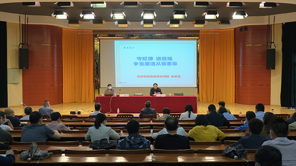 余必龙以《守纪律、讲规矩,争当廉洁从教表率》为题,从当前反腐形势、案例剖析、如何干三个层面展开,深度解读了当前反腐败的形势、腐败的危害、典型案例的经验教训以及下一步的工作思路。并结合腐败的一些典型案例特别是高校案例,告诫警醒我们象牙之塔、斯文之地的党员干部要始终以案为镜为戒、始终做到对党忠诚、始终保持清正廉洁、始终做到勇于担当,始终坚守纪律规矩“底线”,做到心有所畏、言有所戒、行有所止。报告立意高远、语重心长,引人深思、发人警醒,既有高度又有深度,具有很强的针对性和指导性。报告会现场掌声不断,反响强烈。