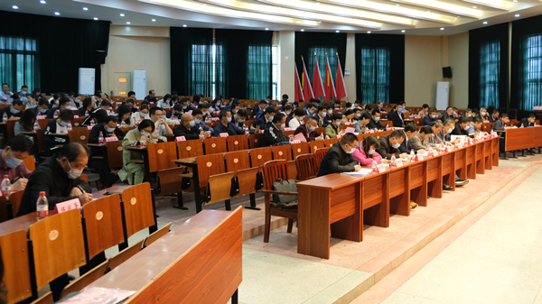 5月20日上午,以市委组织部副部长、市人社局局长聂立新为组长,市直机关工委副书记宋宜玺为副组长的市委第六考核组一行来我校开展2021年度综合考核工作。校党委书记童宏葵主持考核大会并代表校领导班子作总结报告,校全体领导班子成员,各院部、直属单位主要负责人,在校的市党代表、人大代表、政协委员,校教代会执委、副高级及以上职称人员参加会议。
