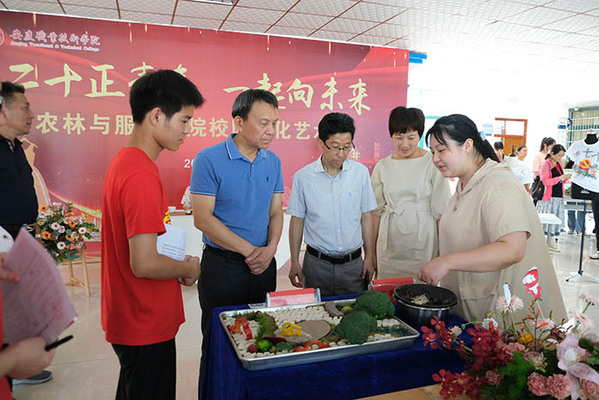 匠心筑梦,艺心育人。6月10日,由校团委主办、各二级学院团总支承办的“安庆职业技术学院美育成果展暨第十三届校园文化艺术节”圆满举行。校领导童宏葵、毕明生、李克让、谭维奇、程飞、陈继平、吴何珍、李五一出席并指导展览活动。