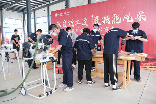 比赛现场,参赛同学正在全神贯注地测量、切割、装配,校领导对于学生的热情度、专业度予以了充分肯定,强调学习技能、投身技能、提升技能、技能成才的理念,学生在技能才艺的展示中,凸显出职业教育的高质量发展。