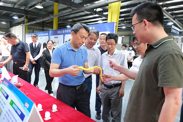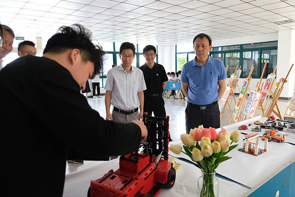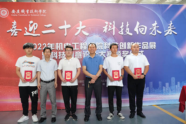 展示过程中,校领导向现场不同专业的同学详细了解了作品的工作原理、技术路线以及创新性、应用前景等,对同学们将作品与生产实际相结合的创意给予了高度赞赏和评价。童宏葵和毕明生还在现场为该学院在科技创意设计大赛中获奖的同学颁奖。