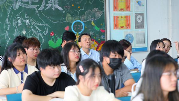 为进一步加强和推进学校思想政治理论课建设和改革,提高思政课教学质量与水平,6月16日上午,校党委书记童宏葵走进3号教学楼509教室,听取了马克思主义学院教师周稳荣讲授的《毛泽东思想和中国特色社会主义理论体系概论》课程。校党委委员、宣传部部长吴何珍,马克思主义学院、现代商务学院和校教学督导与质量管理办公室主要负责同志一同听课。