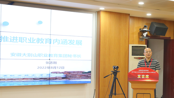 8月12日, 2022年安徽省集团化办学研讨会,在我校行政楼第二会议室举行。校党委书记童宏葵致辞,安庆职教集团理事长、校长毕明生主持。