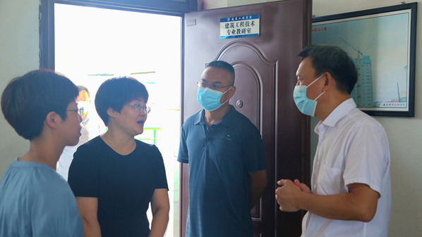 在建筑工程学院,童宏葵察看了教师办公室改造情况。他走进建筑工程技术专业教研室,方晓红老师正在做开学前的准备工作,他勉励方老师,过去取得不少业绩,现在学校正迎来职业教育发展的春天,正大踏步的创建本科专业和本科学校,南校区校园面貌发生了可喜的变化,北校区规划也已起步,多开展教科研工作,把教书育人做得更扎实。