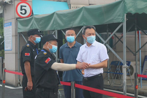 在学校大门口,童宏葵仔细检查疫情防控措施和学生报到设置情况。他认真地告诉身边工作人员和保安,校大门是第一道关口,一定要落细落实疫情防控各项工作,把好“入校关”和“扫码检测关”,做好入校登记,引导师生做好个人防护,强化防疫意识,任何人都不例外,都要自觉遵守疫情防控铁的纪律,确保全体师生安全健康。
