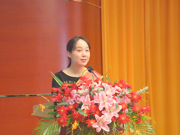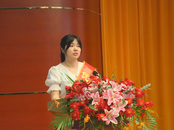 优秀辅导员代表严彦蕾老师上台发言,她感谢学校的关爱与栽培,感谢那一群赋予她平凡工作非凡意义的可爱的学生、分享了辅导员岗位给予她的磨练与考验。她希望用心、用情做好辅导员工作岗位的每一件平凡事,实现更高的理想追求。