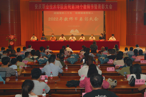 在这个满载收获和喜悦的初秋时节,第38个教师节踏着轻盈的脚步翩然而至。满园新意,满眼欣意,满满心意,校园里处处洋溢着节日的浓浓情意和喜庆氛围。9月8日下午,在校图文信息中心一楼报告厅,我校隆重召开 “迎接党的二十大 培根铸魂育新人”庆祝第38个教师节暨表彰大会。校党委书记童宏葵出席大会并讲话。校党委副书记、校长毕明生主持。校党委副书记李克让、党委委员谭维奇、程飞、陈继平、高润霞、吴何珍、李五一出席。学校各单位负责人、2022年获得校级及以上优秀教师、优秀辅导员、先进教育工作者称号的老师,一年来获得省级以上竞赛、重大教学成果荣誉称号的老师,教师代表、学生代表近200人参加表彰会。