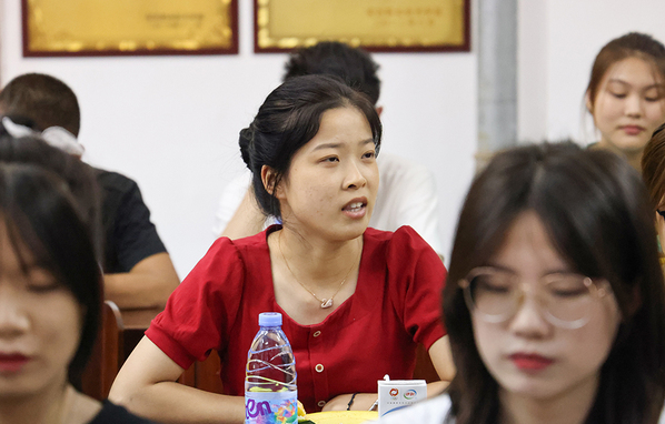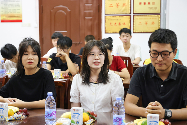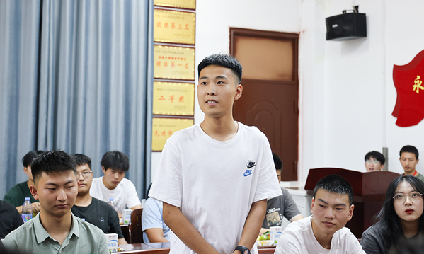 两位同学话匣子一打开,同学们纷纷踊跃发言。来自江西省的熊婉怡、来自河北省的张琼文等同学,除了畅谈自己对学校的美好感受,也请求学兄学姐们向新生介绍一些学习经验和收获。现代商务学院的韩宇、农林服装学院吴孟凡等同学,热情地介绍起来:最重要的是要明确学习目标,虚心求学。建议学弟学妹们除了要认真上好每堂课外,还要积极参加学校一些活动,在活动中增长知识和才干。只要肯学习,到处是课堂,处处有知识。韩宇说,今年暑假特别热,本来想宅在家里吹吹空调,但参加了学校3天文明创建志愿者活动,收获很大,认识了2名老师,学会了许多人情世故。吴孟凡同学谈了她参加各种比赛、运动会和学习舞蹈、参加社会活动的体会。她鼓励新同学们,要把在校3年的每一天过好,过得精彩。来自合肥的大二女生李文娜说,来学校一年来,父母付出很多,时时牵挂着她,她决心绝不辜负父母,好好学习,以优异的成绩感恩父母。