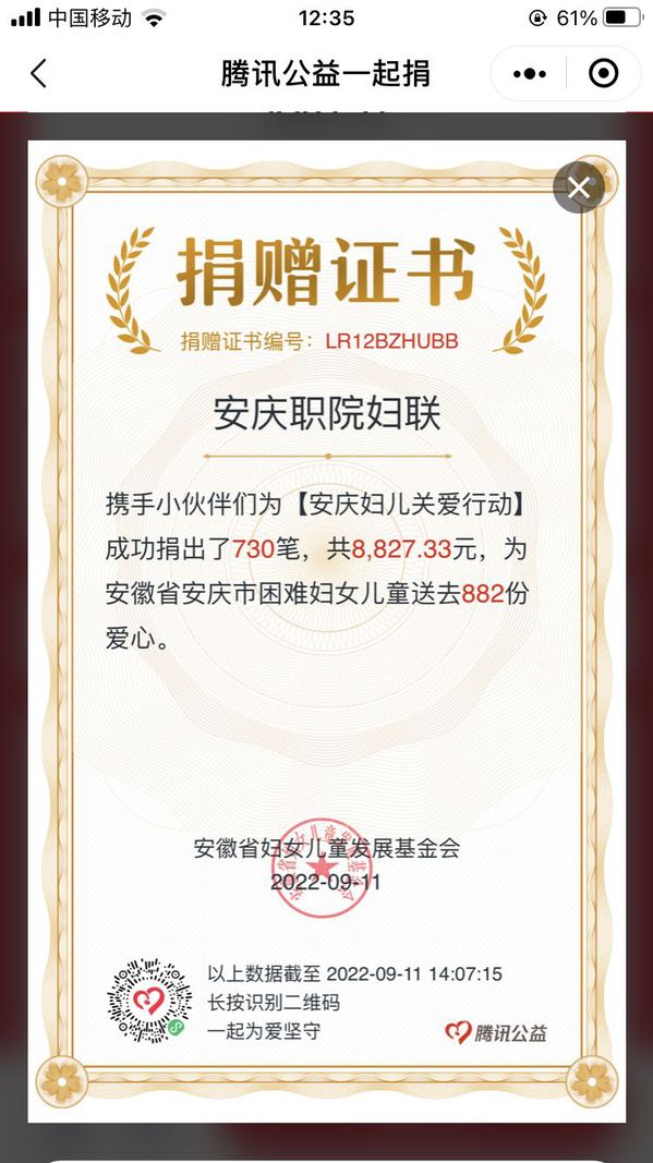 公益如歌,明月常伴。在大家的爱心接力中,2022年的“99公益日”已落下帷幕。从9月7日至9月9日,校妇联参与的“安庆妇儿关爱行动”项目,在全校范围内共组建10个战队。