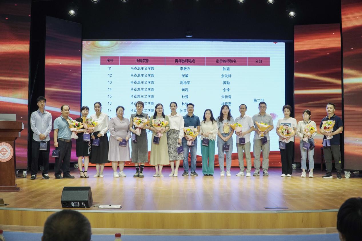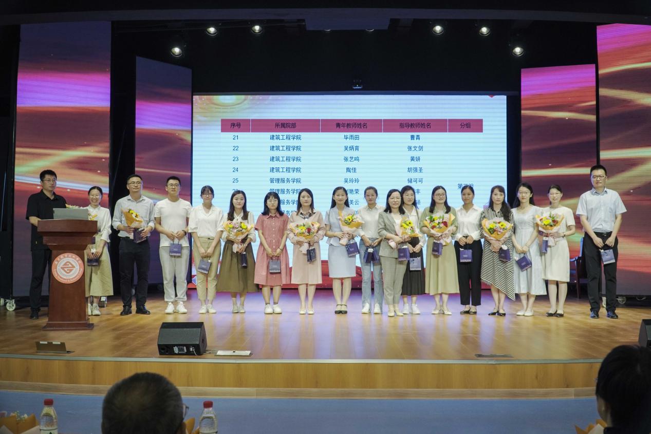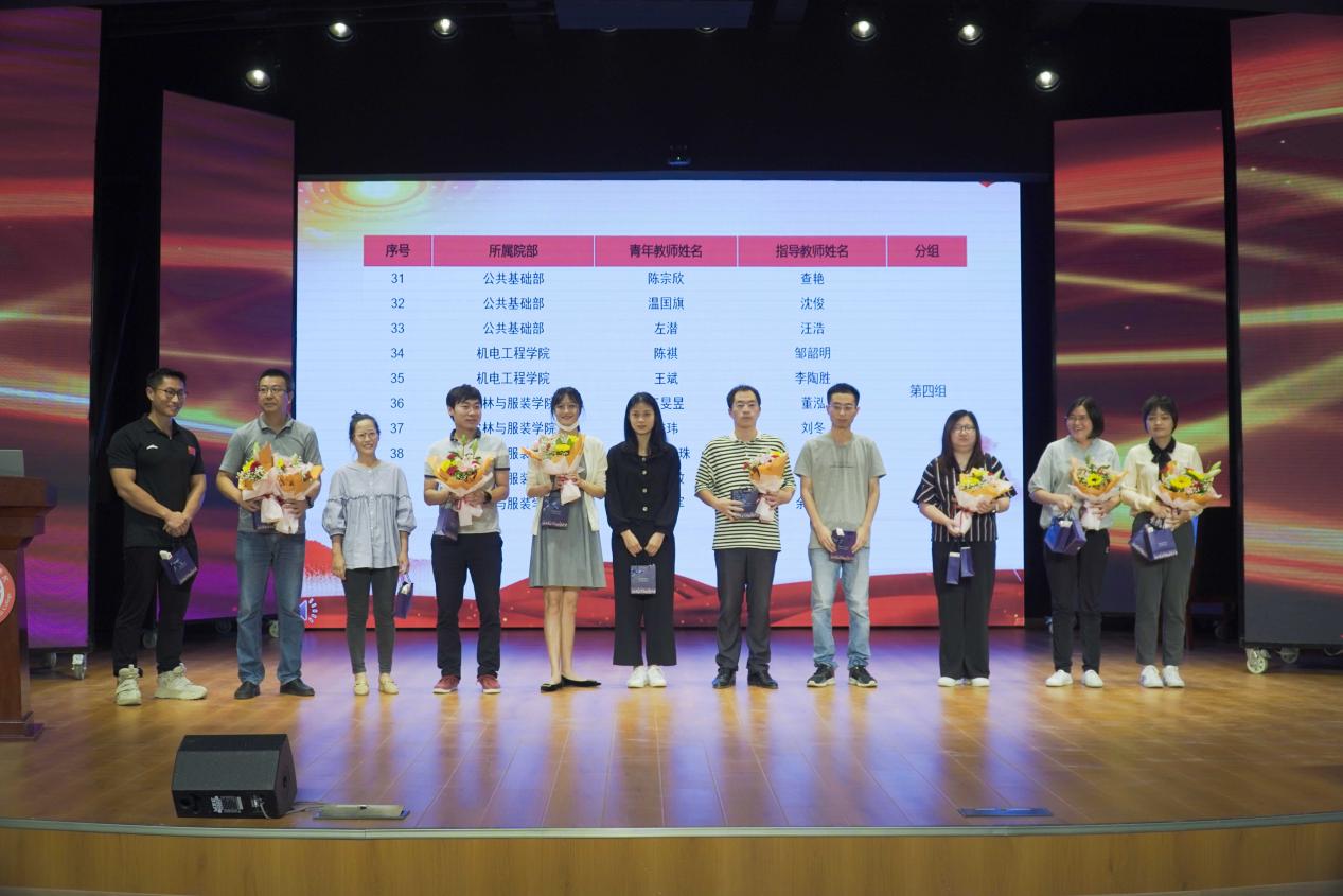 师徒结对仪式上,青年教师代表给校领导及各教学院部领导献花,40名青年教师给自己的指导教师献花,40对师徒互赠礼物。