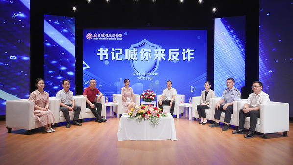 9月27日晚,各二级学院举行主题班会。同学们刚吃过晚餐,就急匆匆朝智慧教室走去,不一会儿,1号和3号教学楼216教室就坐满了同学,他们聚精会神地盯着大屏幕。吸引他们眼球的不是什么大片,而是学校刚刚拍摄的专题片——《书记喊你来反诈》。因疫情防控原因,还有一些同学在宿舍里用手机观看。