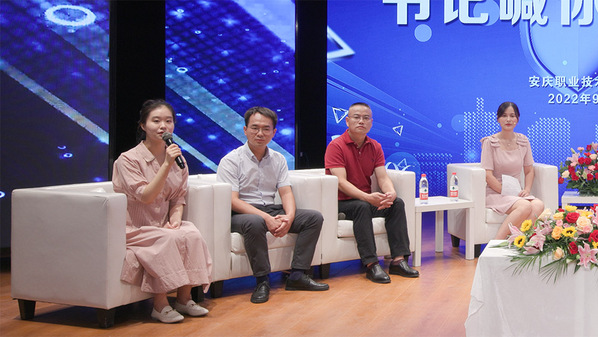 9月22日下午,童宏葵和团市委书记项薇,校党委委员、统战部部长兼保卫处处长李五一,老峰镇派出所所长张凡,学生处副处长李专,中国移动安庆分公司校园中心总监余蛟龙和辅导员代表刘文倩等围坐在一起,与同学代表开展反诈骗专题访谈,并录制视频。